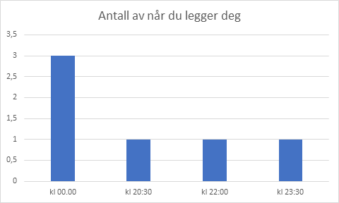 De fleste legger seg kl. 00:00 også er det litt forskjellig etter det. De fleste har sagt at de ikke får nok søvn.